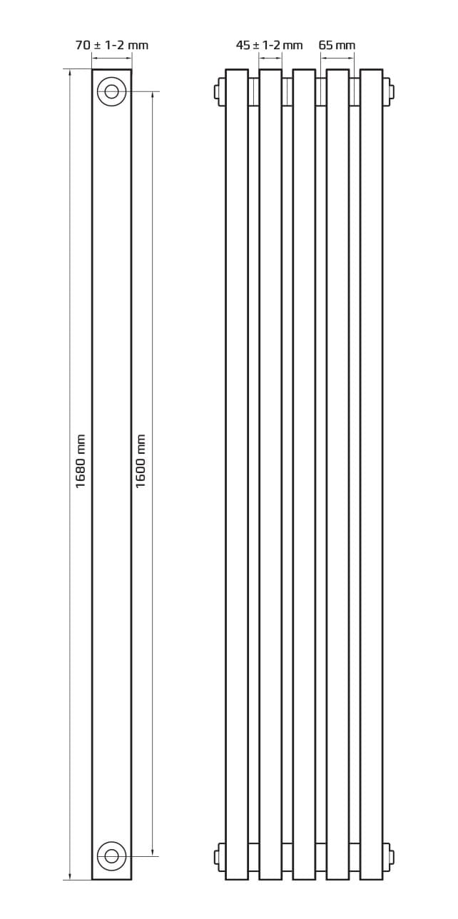 Чугунный вертикальный радиатор Радимакс Lynn 1600 — высотой 1680 мм., шириной 520 мм.,8сек. настенный; боковое/нижнее подключение, цвет: грунт