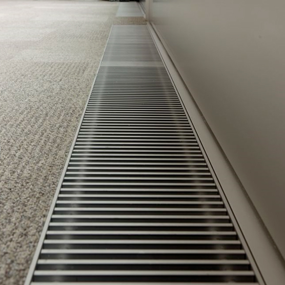 Электрические встраиваемые в пол конвекторы KV Electro сочетают в себе эстетичный внешний вид и максимальную функциональность. Невозможность проведения водяного отопления больше не является преградой в принятии дизайнерских решений: лаконичный внешний вид и широкий ассортимент алюминиевых решеток делают эти приборы подходящими для любого, даже самого неординарного проекта. Cоздаваемая тепловая завеса от ниспадающих потоков холодного воздуха, предотвращают запотевание окон. Конвекторы встраиваются в структуру пола, оставляя видимой лишь декоративную решетку, которая образует с полом единый дизайн-элемент. По заказу приборы также в угловом и радиусном исполнении. Увеличение длины прибора увеличивает теплоотдачу конвектора. Правильно подобрав прибор, Вы можете создать оптимальную систему отопления для вашего помещения.