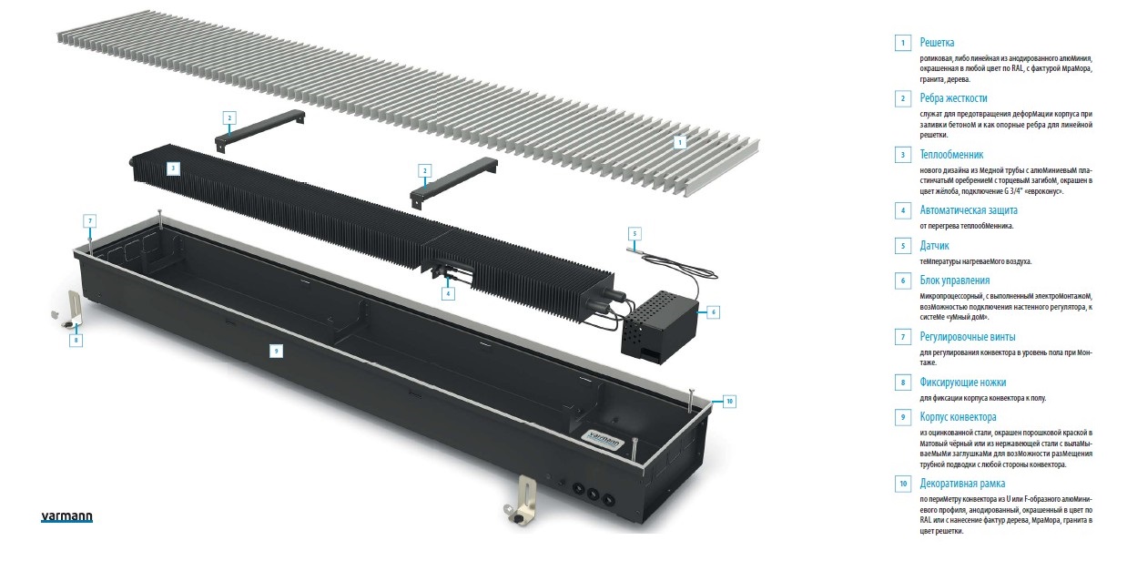 | Артикульное наименование | Электрический внутрипольный конвектор Varman Ntherm Electro |