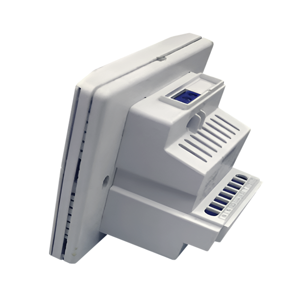 Контроллер температуры помещения с ЖК-дисплеем для полускрытого монтажа и используется в системах отопления. Модель отличается простотой установки и удобством эксплуатации. Оснащена микропроцессорным управлением и крупным подсвечиваемым ЖК-дисплеем, на котором отображаются режим работы (охлаждение, обогрев, вентиляция), скорость вентилятора, текущая температура воздуха и заданное значение температуры.
